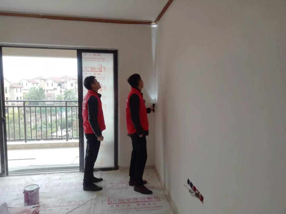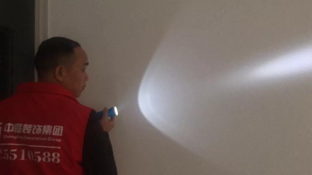強(qiáng)光手電筒檢查陰角施工是否垂直平整