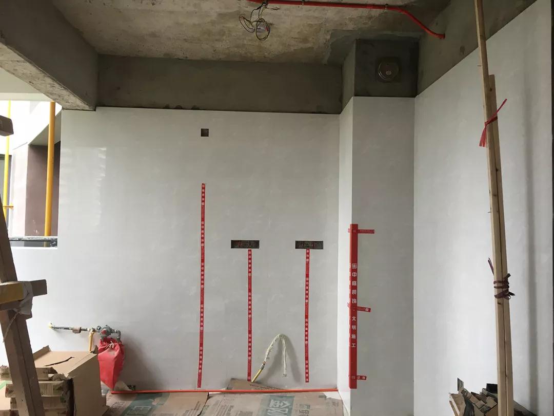 水電標(biāo)識(shí)鋪貼完好,防止后期櫥柜等安裝打孔打到水電線管。