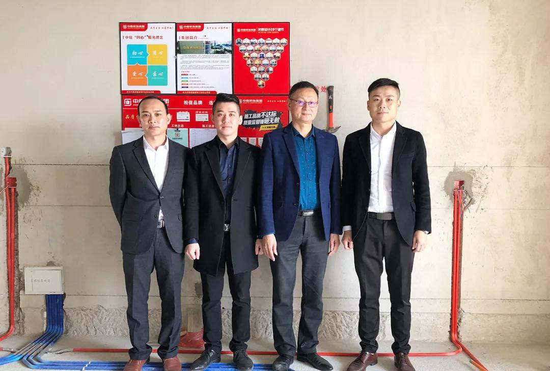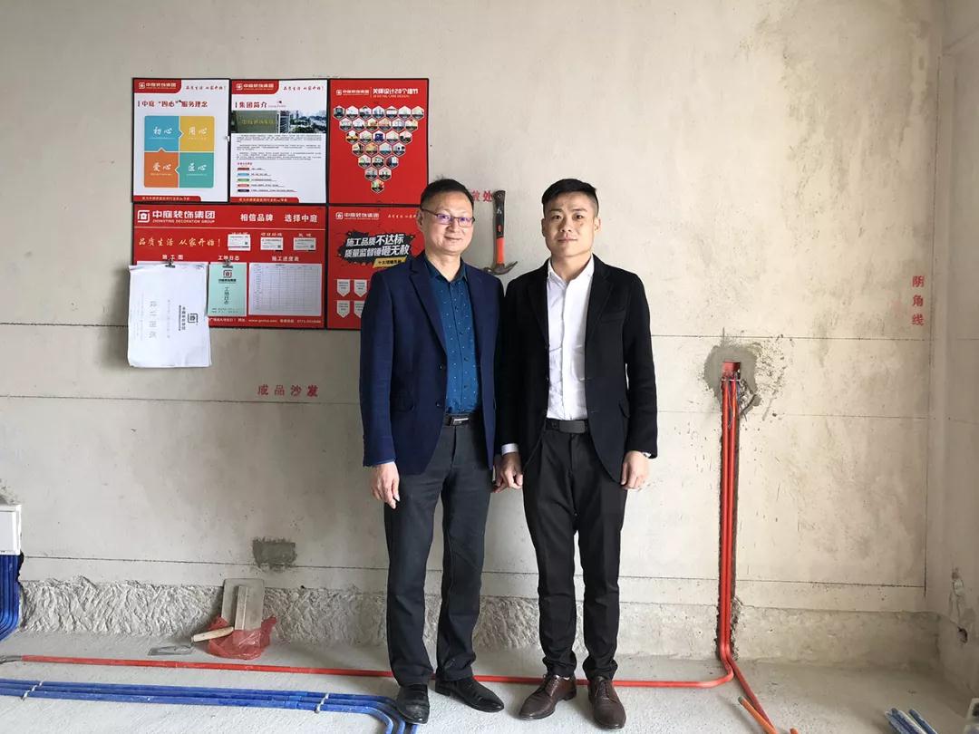 在參觀完中庭裝飾集團(tuán)展示廳及樣板房后,丁總及集團(tuán)領(lǐng)導(dǎo)陪同洪斯君先生一起來到了新民宿舍的工地,現(xiàn)場進(jìn)行巡查和指導(dǎo)工作。