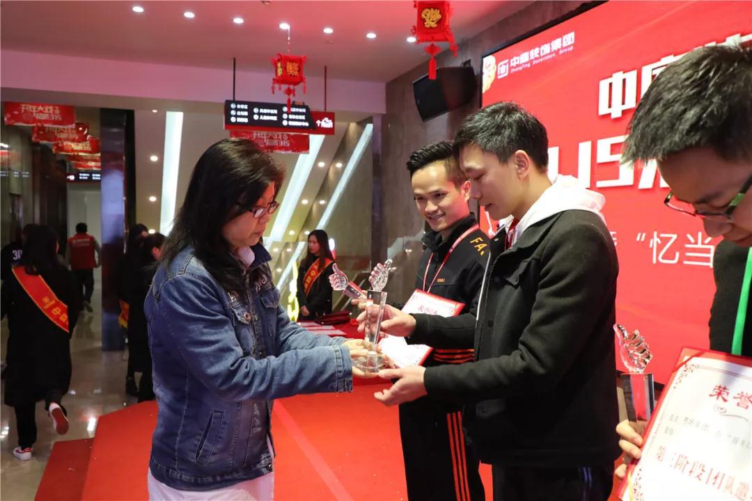 集團(tuán)商學(xué)院院長(zhǎng)趙立鳳為獲獎(jiǎng)團(tuán)隊(duì)頒發(fā)榮譽(yù)證書和獎(jiǎng)杯