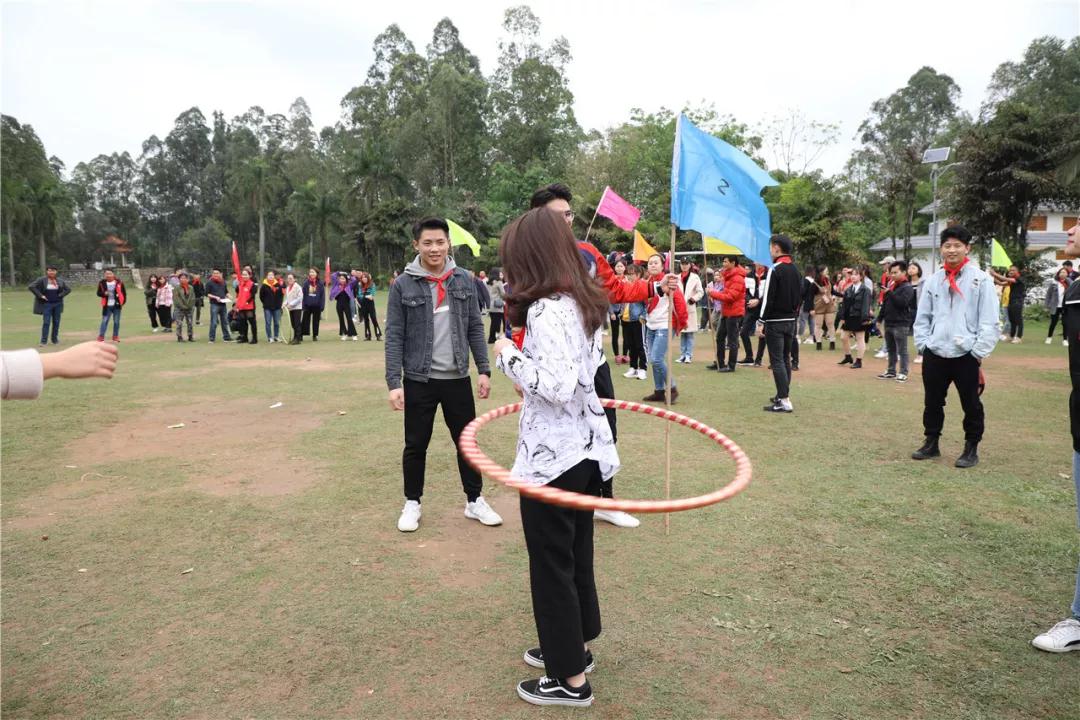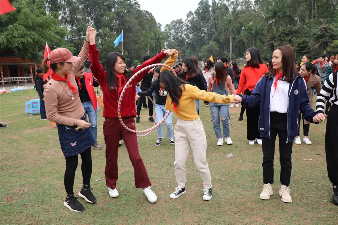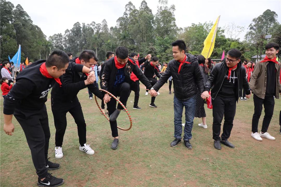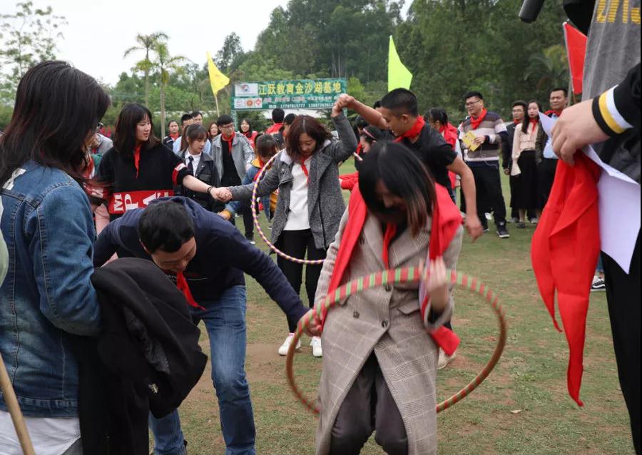 游戲規(guī)則:小組人員手牽手,從第一個(gè)人傳遞拉呼啦圈至最后一人,中途隊(duì)員不能放開手或者用手去接觸呼啦圈,否側(cè)重來(lái),完成任務(wù)團(tuán)隊(duì)。