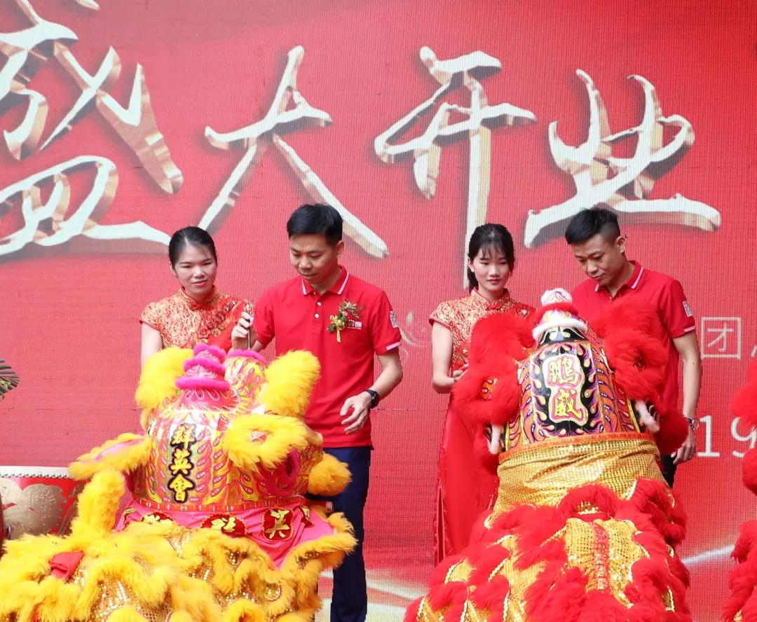 在鏗鏘有力、熱鬧非凡的鑼鼓聲中,火舞祥獅將寓意著“生財(cái)”的生菜送到集團(tuán)總裁丁胡手中,為中庭裝飾集團(tuán)獻(xiàn)上祥瑞的祝福。