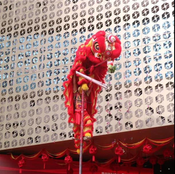 激揚(yáng)的鼓樂陣陣響起,象征著吉祥和財(cái)富的雄獅迅猛登高,見青、喜青、望青、探青、采青。
