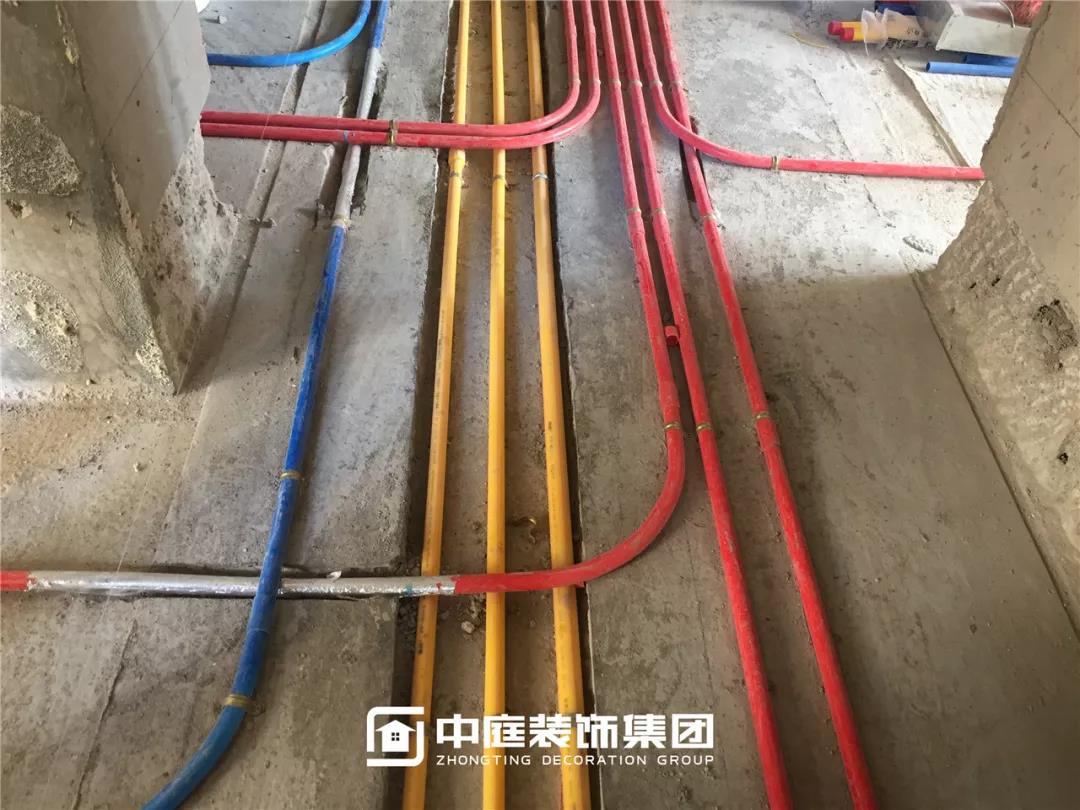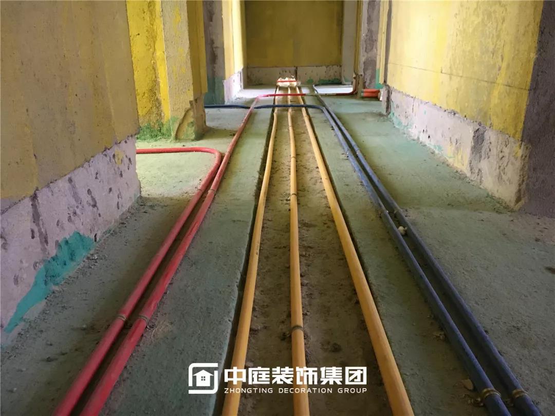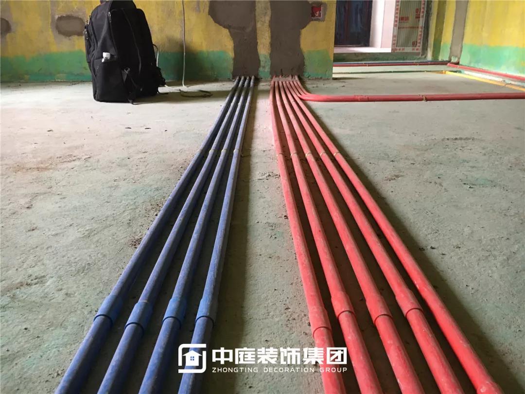 施工現(xiàn)場(chǎng)線管鋪設(shè)橫平豎直,按照集團(tuán)施工規(guī)定使用鐵皮卡扣固定,管和管之間留有足夠縫隙,以便鋪設(shè)地磚時(shí)水泥砂漿進(jìn)入管下,避免地磚后期出現(xiàn)空鼓。