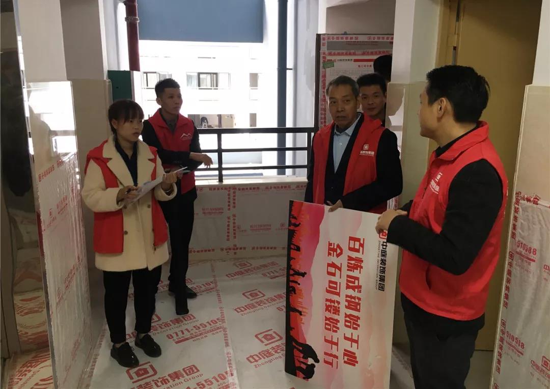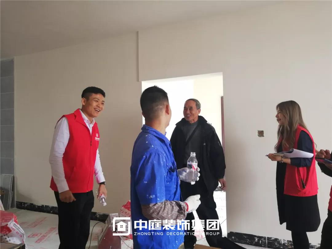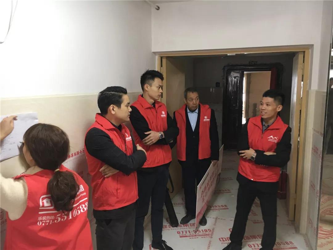 丁胡總裁與業(yè)主、施工師傅交流膩?zhàn)邮┕で闆r;交流過(guò)程中明顯可以看出師傅和業(yè)主朋友的關(guān)系非常融洽,巡檢現(xiàn)場(chǎng)其樂(lè)融融。
