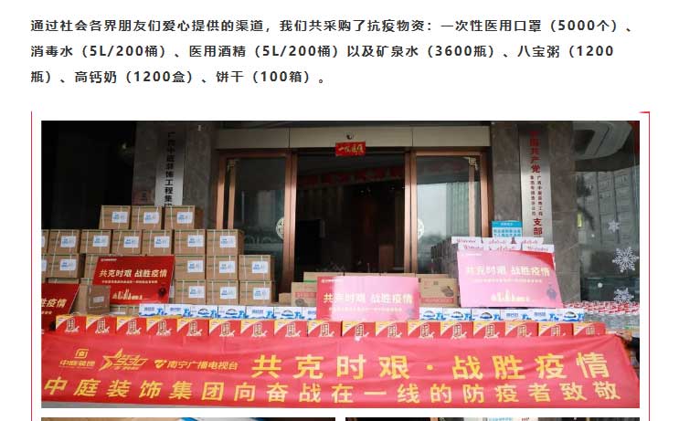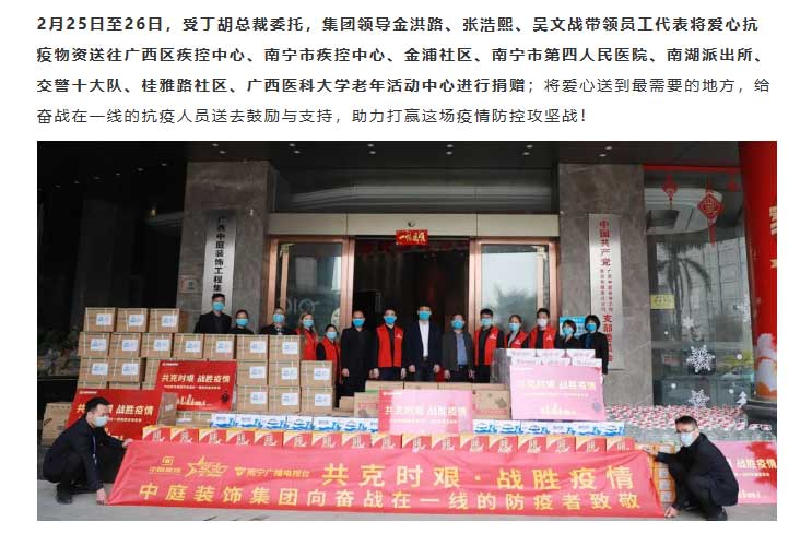 共克時艱,“疫”不容辭!中庭集團向一線抗疫工作者捐贈防疫物資