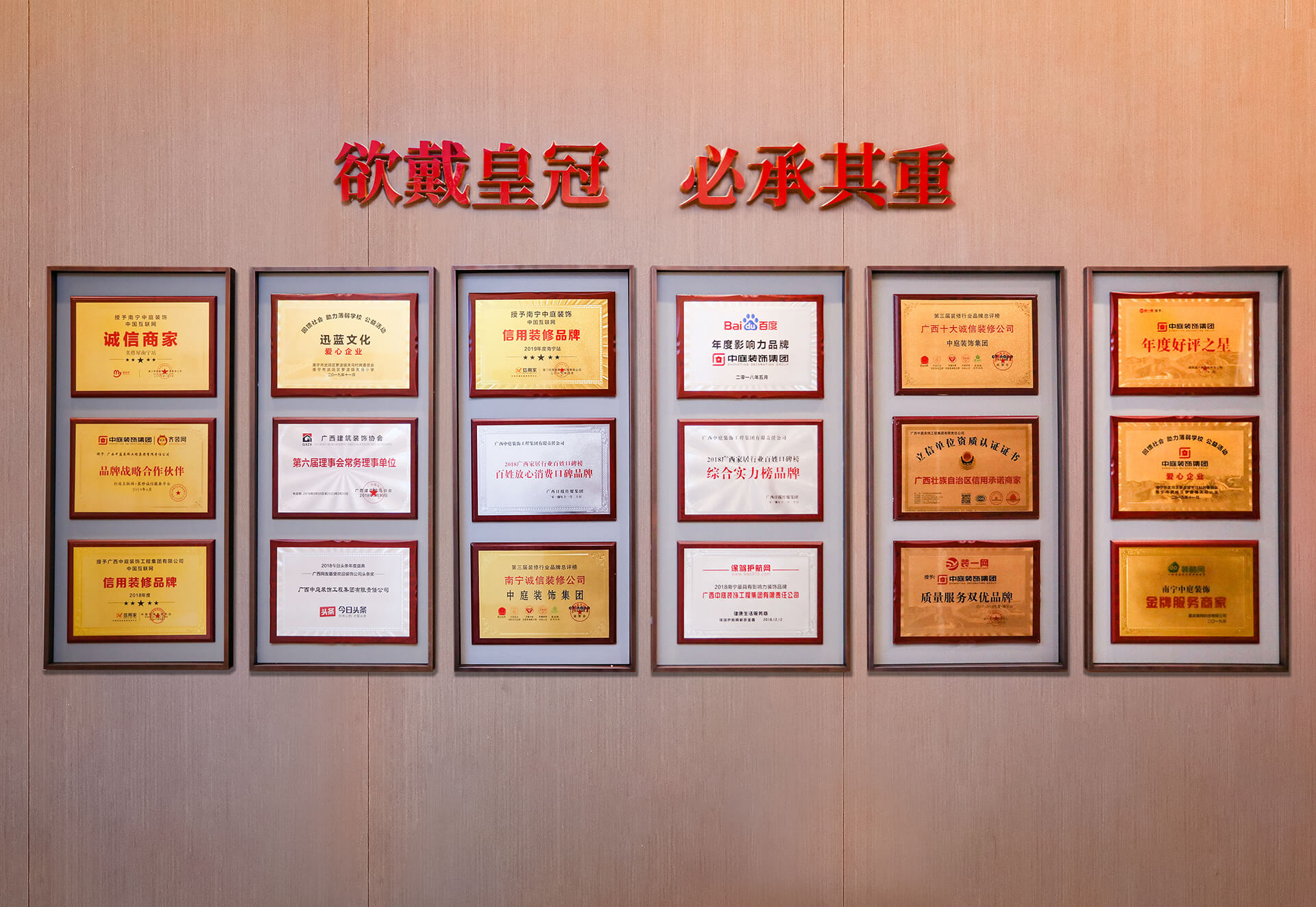 中庭裝飾集團總部正式啟用裝一網(wǎng)2017~2018年度·南寧站“質(zhì)量服務(wù)雙優(yōu)品牌”
