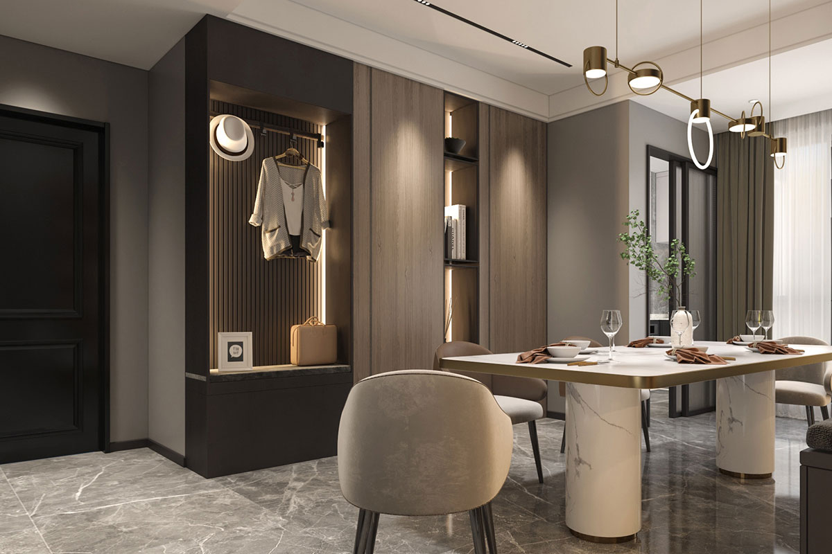 本案總面積為136m2,設(shè)計(jì)師整體色彩上采用“黑白灰”基調(diào),局部輔以調(diào)色,空間沉穩(wěn)靈動(dòng)跳躍。本案以現(xiàn)代風(fēng)格輕巧內(nèi)飾,低飽和度色彩點(diǎn)綴空間,形成輕松舒適的氛圍同時(shí)也不乏低調(diào)內(nèi)斂的腔調(diào),再加上富有質(zhì)感的輕奢家居,獨(dú)一無(wú)二的理念和獨(dú)特視覺(jué)呼之欲出。