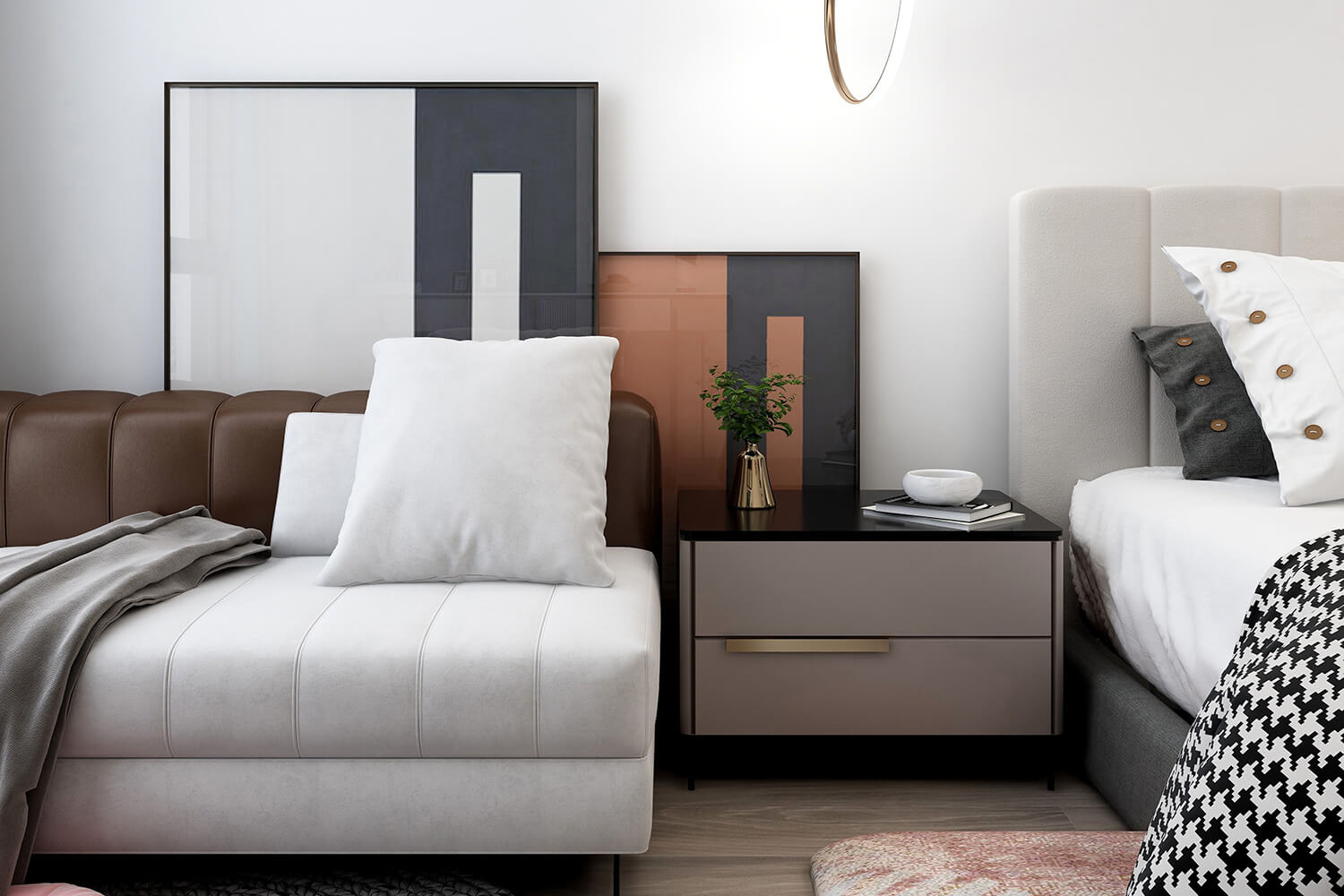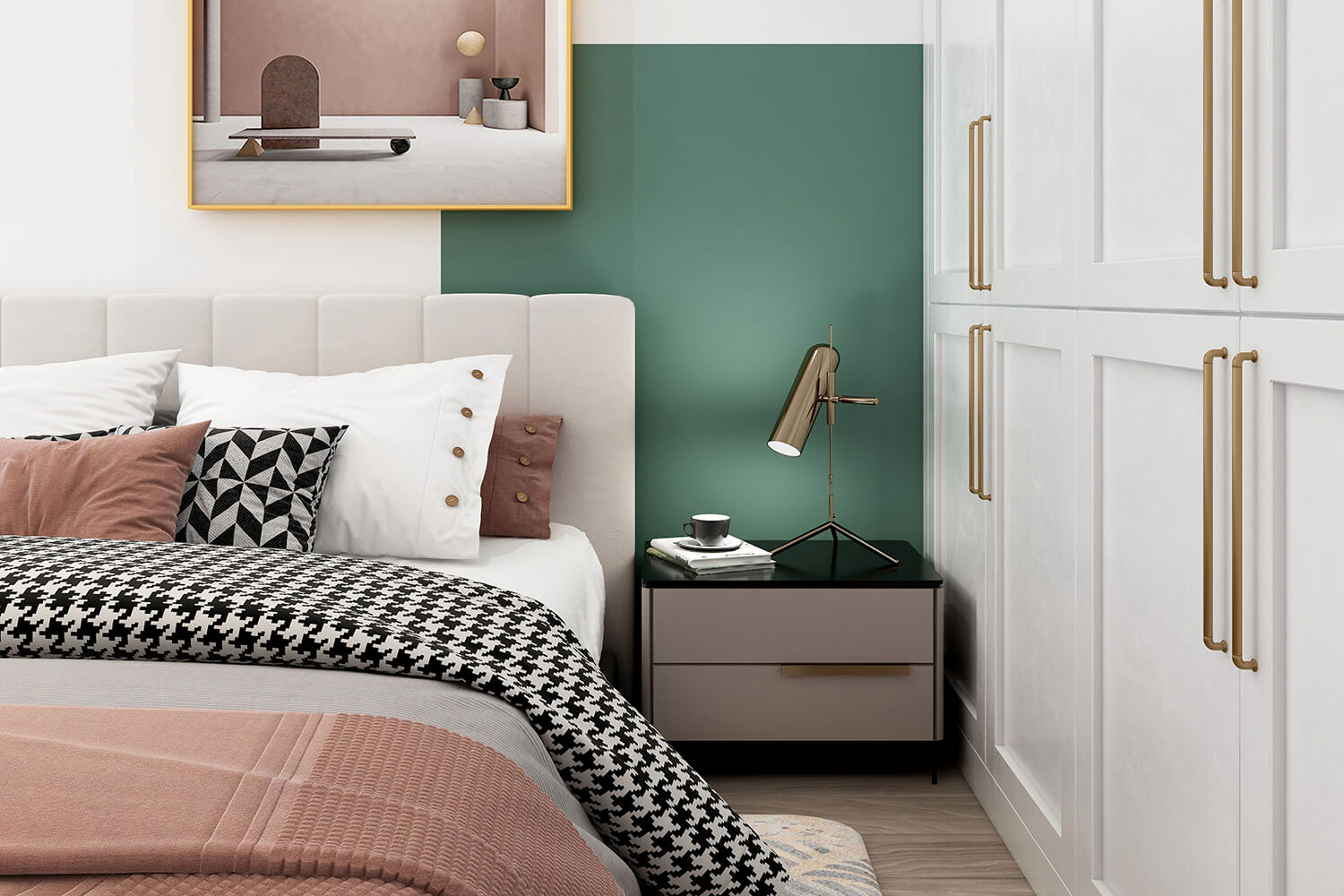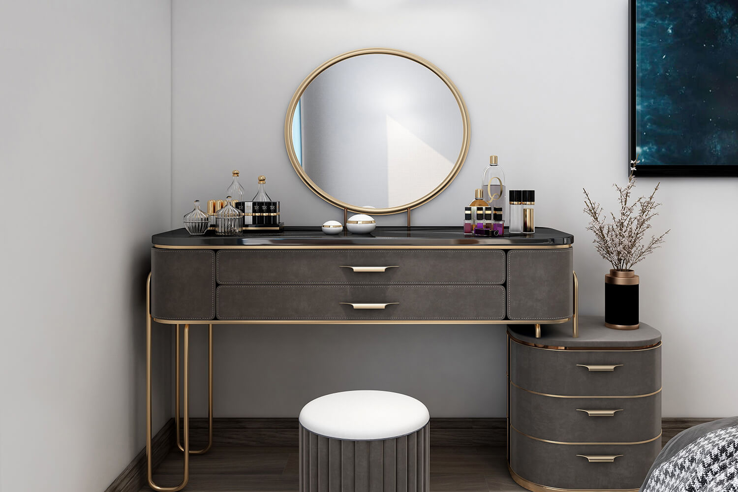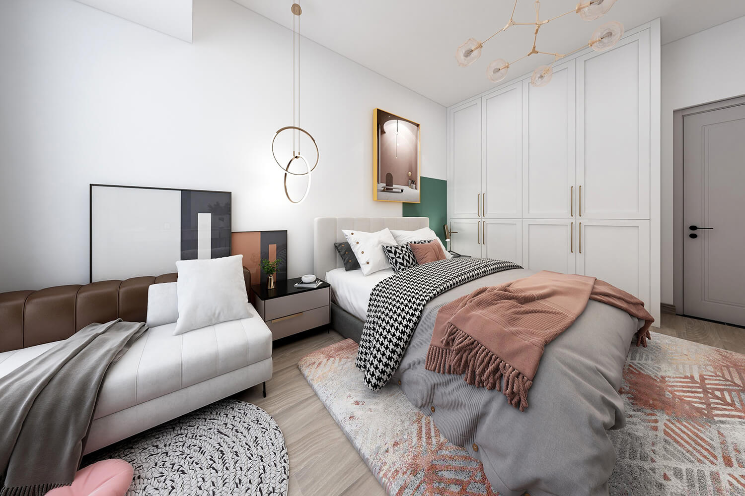 本案總面積118㎡,整體配色以白色為主色調(diào),用充滿清新氣息的綠與藍為空間帶來清爽感覺,點亮空間視覺色彩感知,展現(xiàn)別具一格的視覺感,華麗的金屬色澤增添輕奢質(zhì)感。