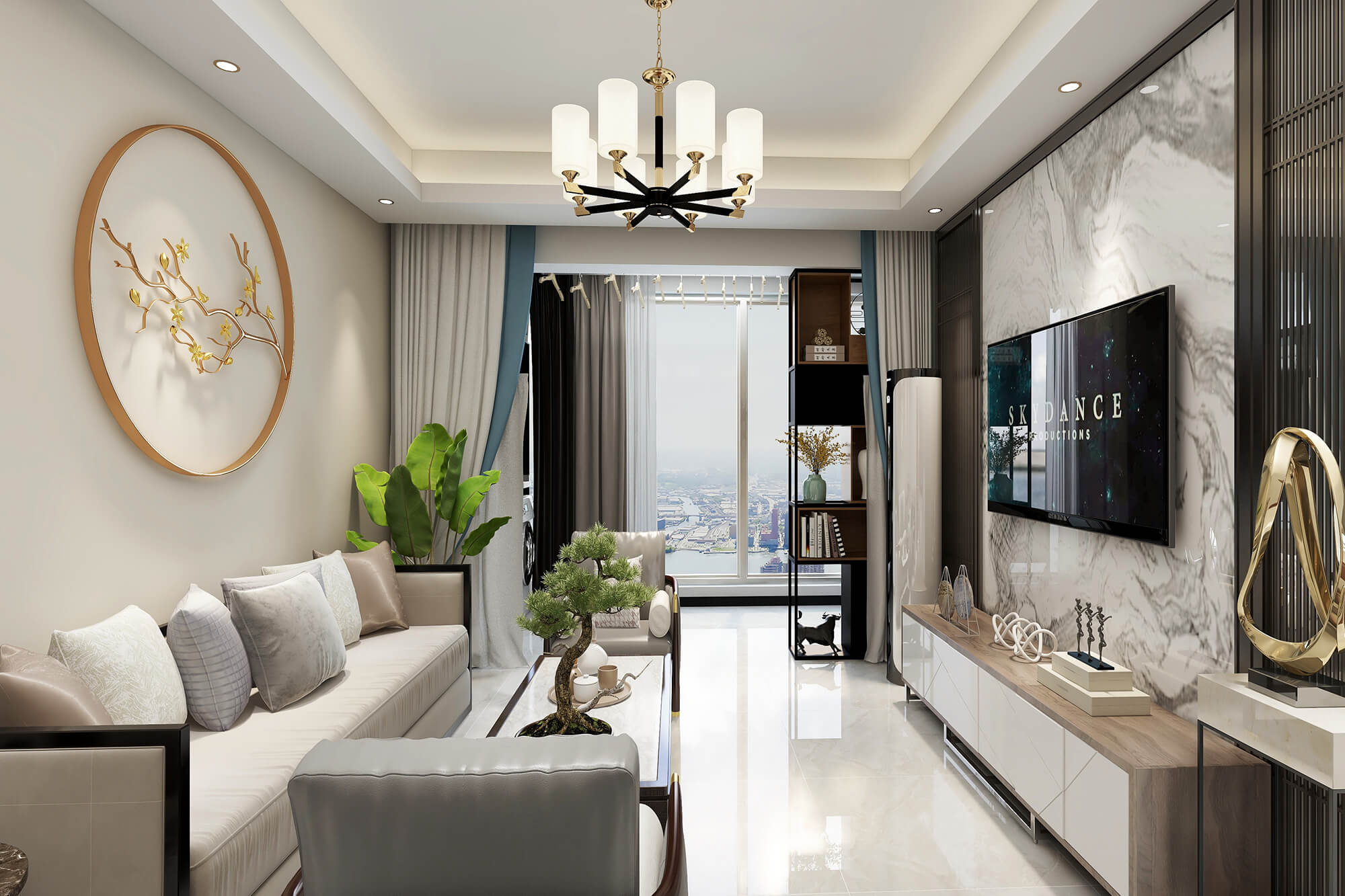 瀏覽量:465新中式風格的室內(nèi)空間講究主次分陰、追求合理的空間布局和家具擺設(shè)。同時非常強調(diào)融入自然,并且注重人與空間的關(guān)系。在這種追求人與自然融合的理念下,外部環(huán)境也可視為室內(nèi)空間的延伸,讓人在家居空間也能感受到室外的自然景致。此外,室內(nèi)空間常在一些細節(jié)上勾勒出禪宗的意境,完美地將中國人內(nèi)在的哲學觀念展露于室內(nèi)裝飾中。側(cè)重于表達傳統(tǒng)空間的意識形態(tài),同時對文化習俗和美學意識進行了更深層次的考量。因此,在空間設(shè)計中會更注重傳統(tǒng)文化的傳承,以達到提升家居空間品質(zhì)的目的。此外,通過提取傳統(tǒng)家居的精華元素和生活符號進行合理的搭配、布局,使整體的家居設(shè)計中既有中式家居的傳統(tǒng)韻味,又能夠讓傳統(tǒng)元素更具筒練、大氣、時尚的特點,使現(xiàn)代家居更富有中華文化韻味。