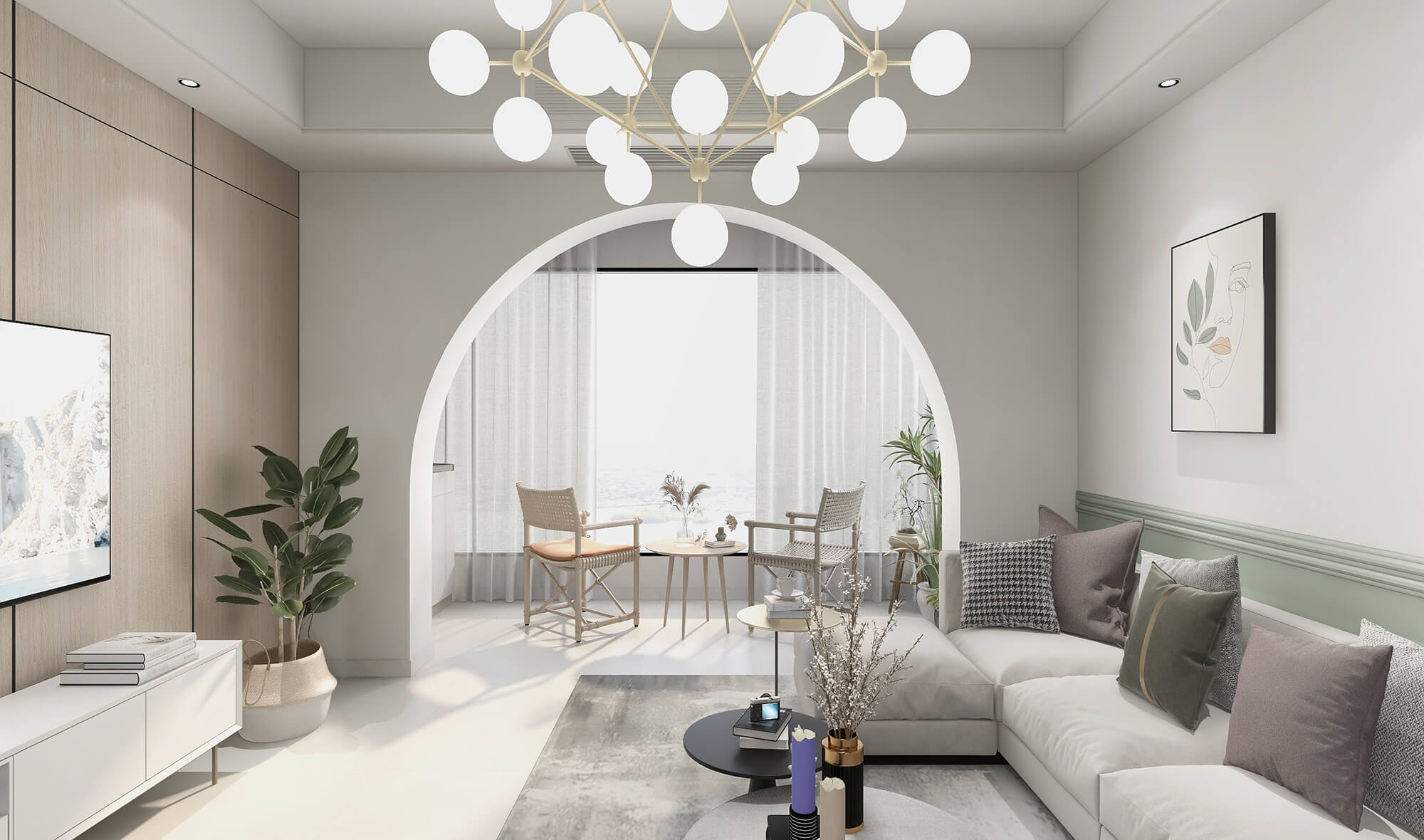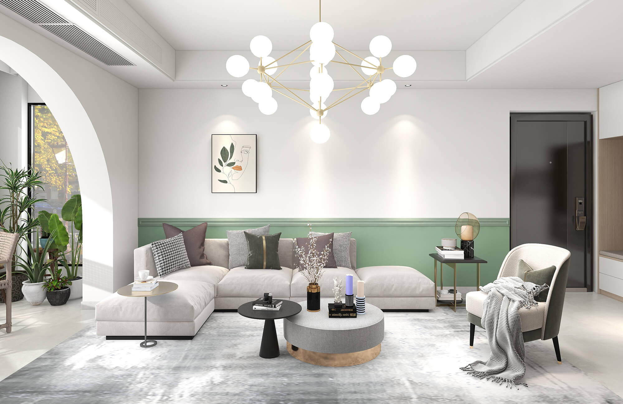 本案戶型為:3房2廳2衛(wèi),總面積110㎡。此案例以現(xiàn)代簡(jiǎn)約為主線,設(shè)計(jì)師遵循自然流動(dòng)的空間通透感,營造出一個(gè)藝術(shù)純粹靈動(dòng)的空間,將現(xiàn)代的生活方式體現(xiàn)的淋漓盡致。