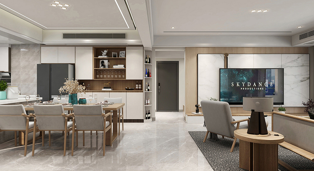 本案例128㎡的新中式風格。中式與禪意的結合帶給人一種寧靜脫俗、含蓄內斂的感覺,營造出一種令人輕松自然的端莊雅致氛圍?,F代元素的點綴,讓空間不乏時尚感。