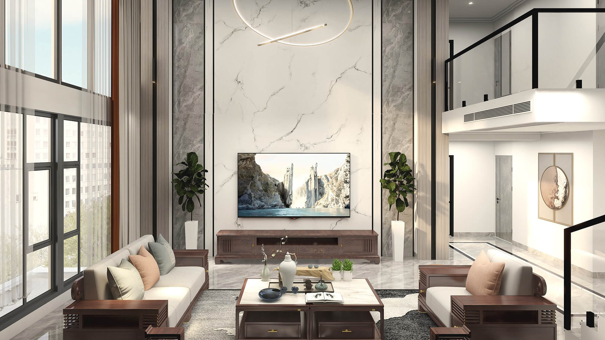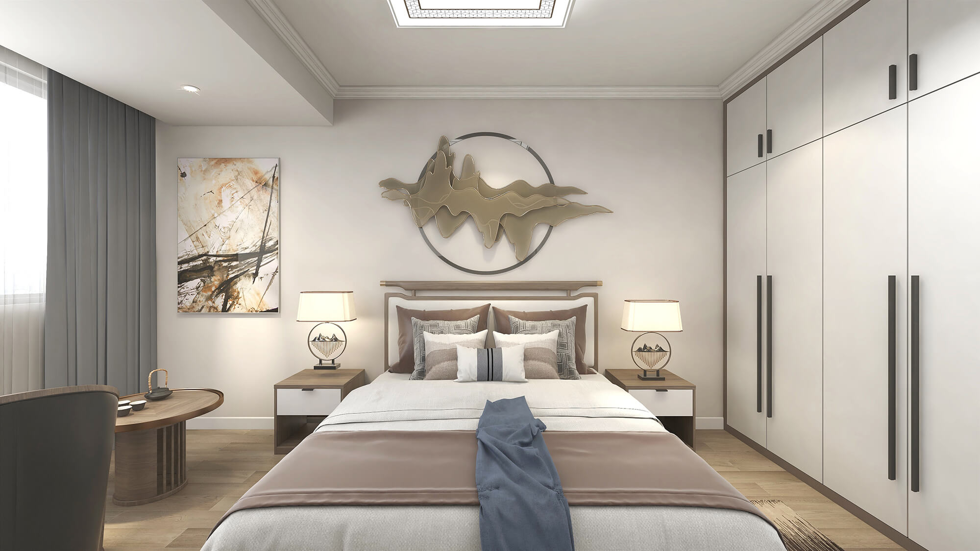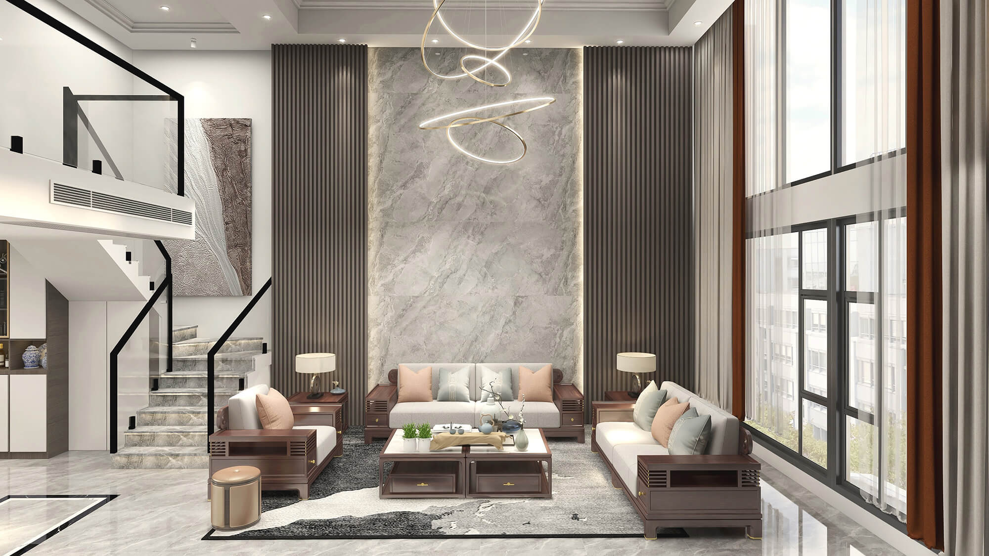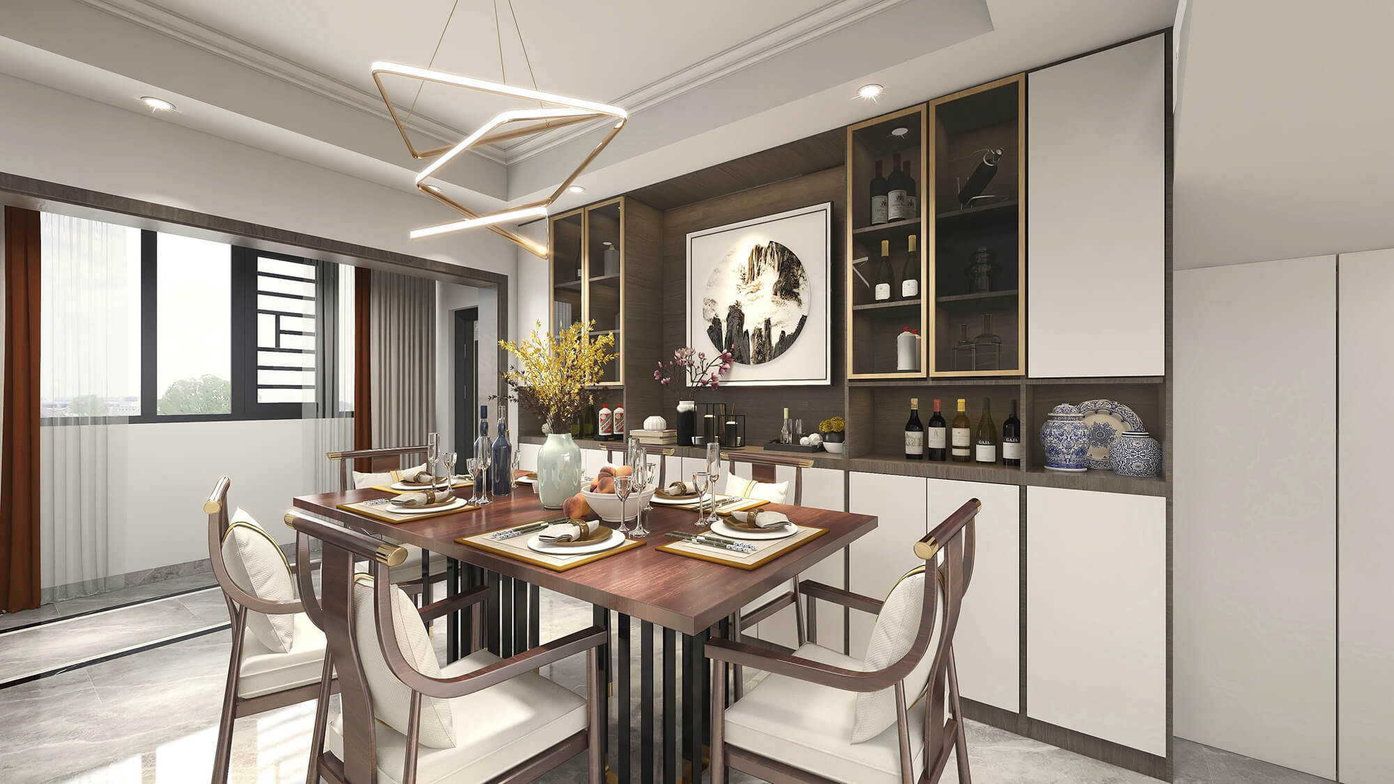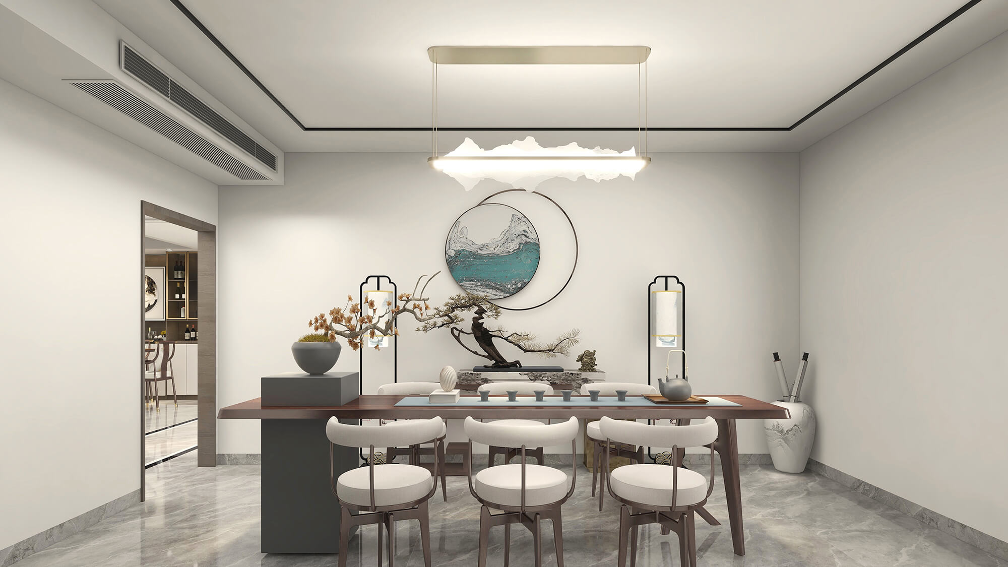 施工面積:200-220㎡| 設(shè)計風(fēng)格:新中式風(fēng)格