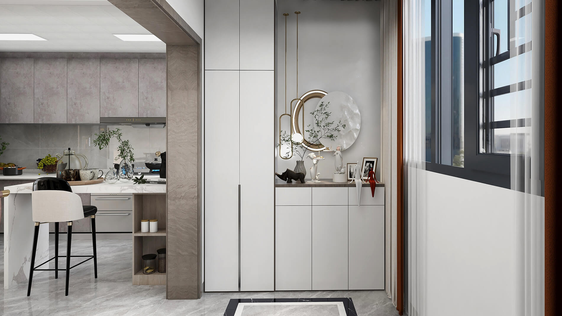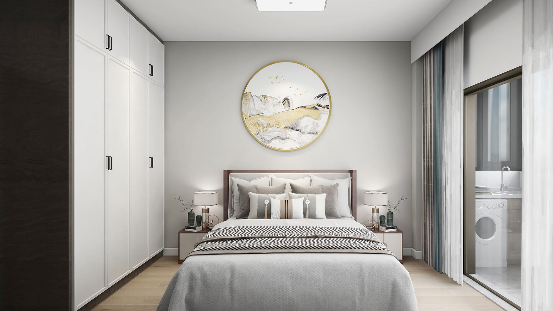 本案為220㎡的新中式風(fēng)格案例。淡雅的色調(diào),呈現(xiàn)出清亮的質(zhì)感空間,現(xiàn)代飾品的擺設(shè)和新中式家具搭配,勾勒出一個極具格調(diào)的精神寧靜地帶。