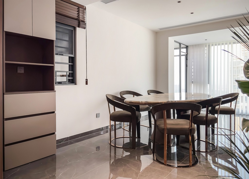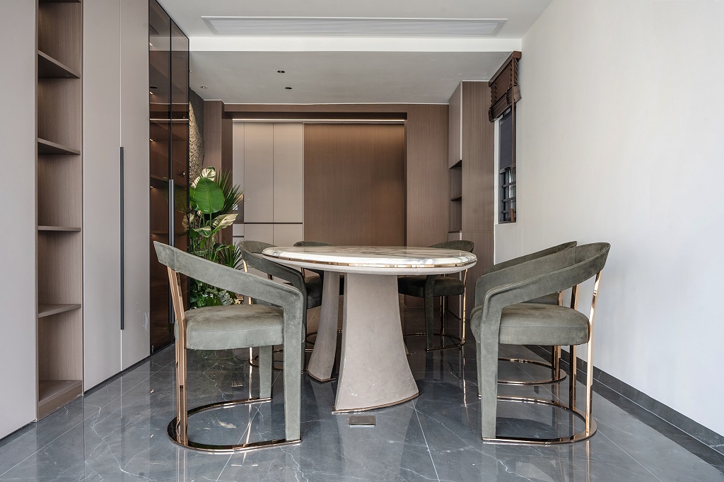 本案以意式輕奢為基調(diào),將自然肌理與奢華材質(zhì)完美融合,通過極簡線條與精致細(xì)節(jié)的碰撞,打造出兼具藝術(shù)性與功能性的居住空間。規(guī)整的硬裝搭配低彩度的軟裝,讓低調(diào)沉穩(wěn)的氣息在家中蔓延開來。