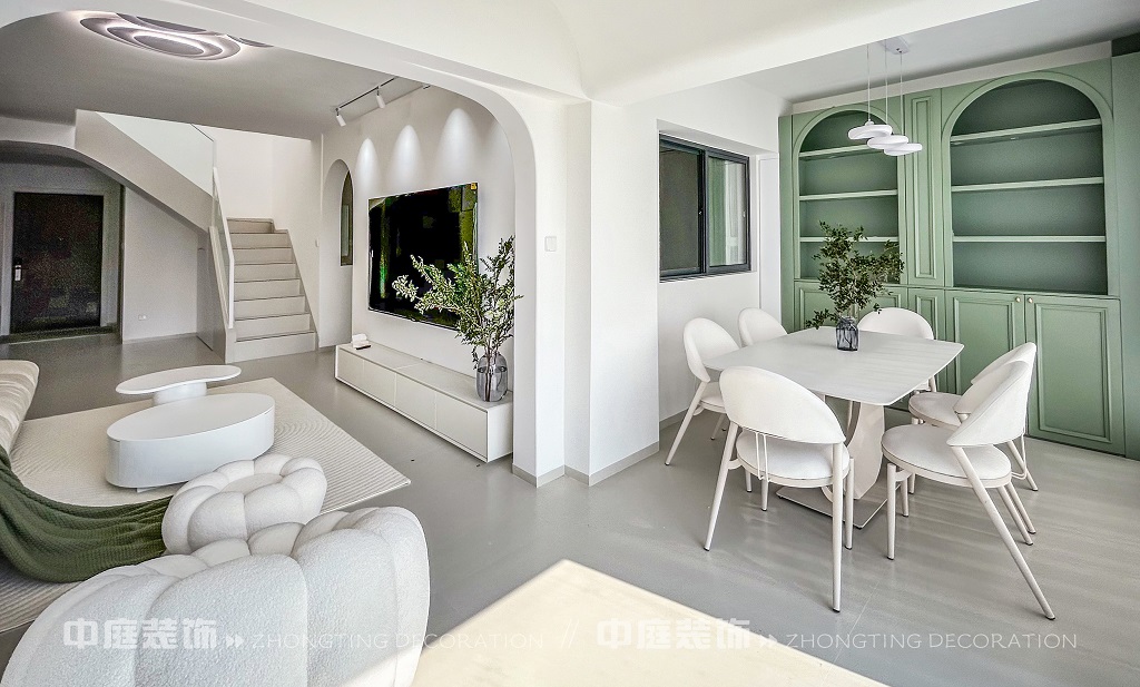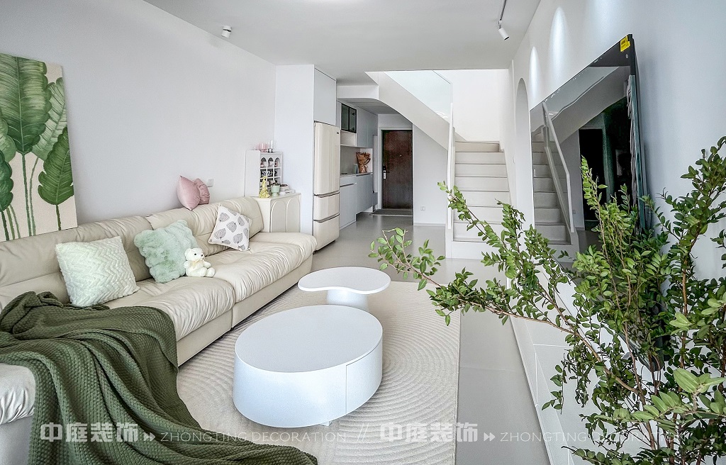 瀏覽量:186這一套綠意盎然的奶油風格好似把森林搬進了家,軟乎乎的奶白沙發(fā)搭配苔蘚綠毛毯,抱枕選了粉綠撞色,往上面一躺,一天的疲憊都被融化了!圓潤的白色組合茶幾,顏值與實用并存,氛圍感直接拉滿。墻面掛畫大葉綠植藝術畫,角落擺放鮮活綠植,將自然綠意融入空間。