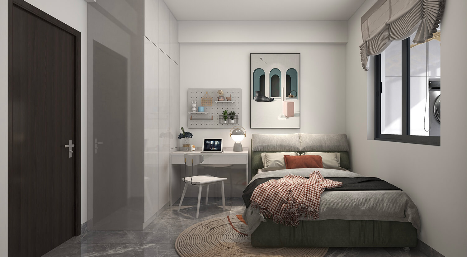 本案例戶型為:3房1廳1衛(wèi),總面積130㎡。整體家具通常采用簡約的線條和材料。家具的色調(diào)以灰色、米色、白色為主,這些顏色可以營造出一個舒適和溫馨的氛圍。
