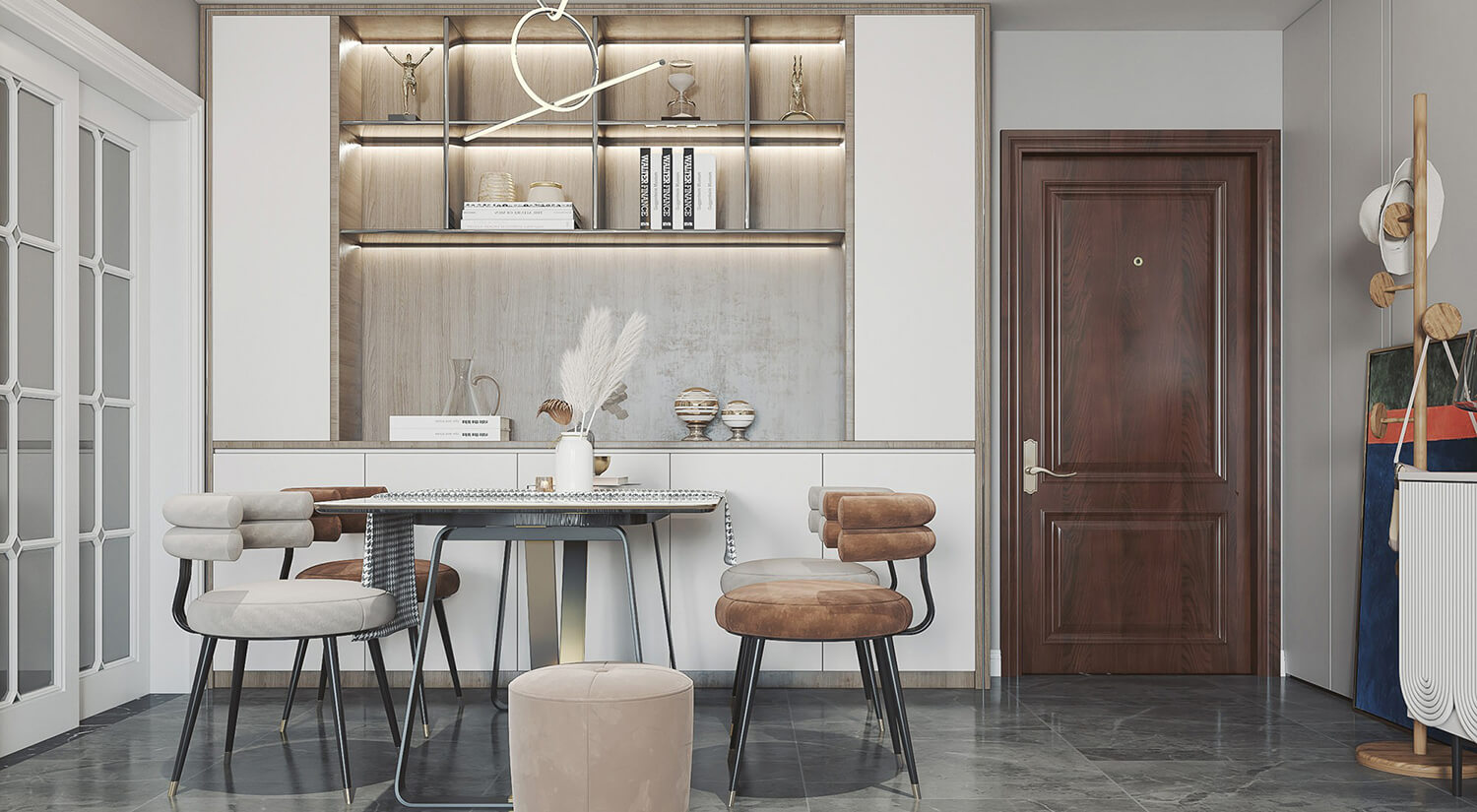 瀏覽量:387現(xiàn)代輕奢風(fēng)格注重細(xì)節(jié)處理,如用金屬或水晶飾品點(diǎn)綴,營造出高貴典雅的氛圍。整體選用大面積的白色,再選用淺棕色的色調(diào)作為點(diǎn)綴,整體富有質(zhì)感又有生活的溫馨。
