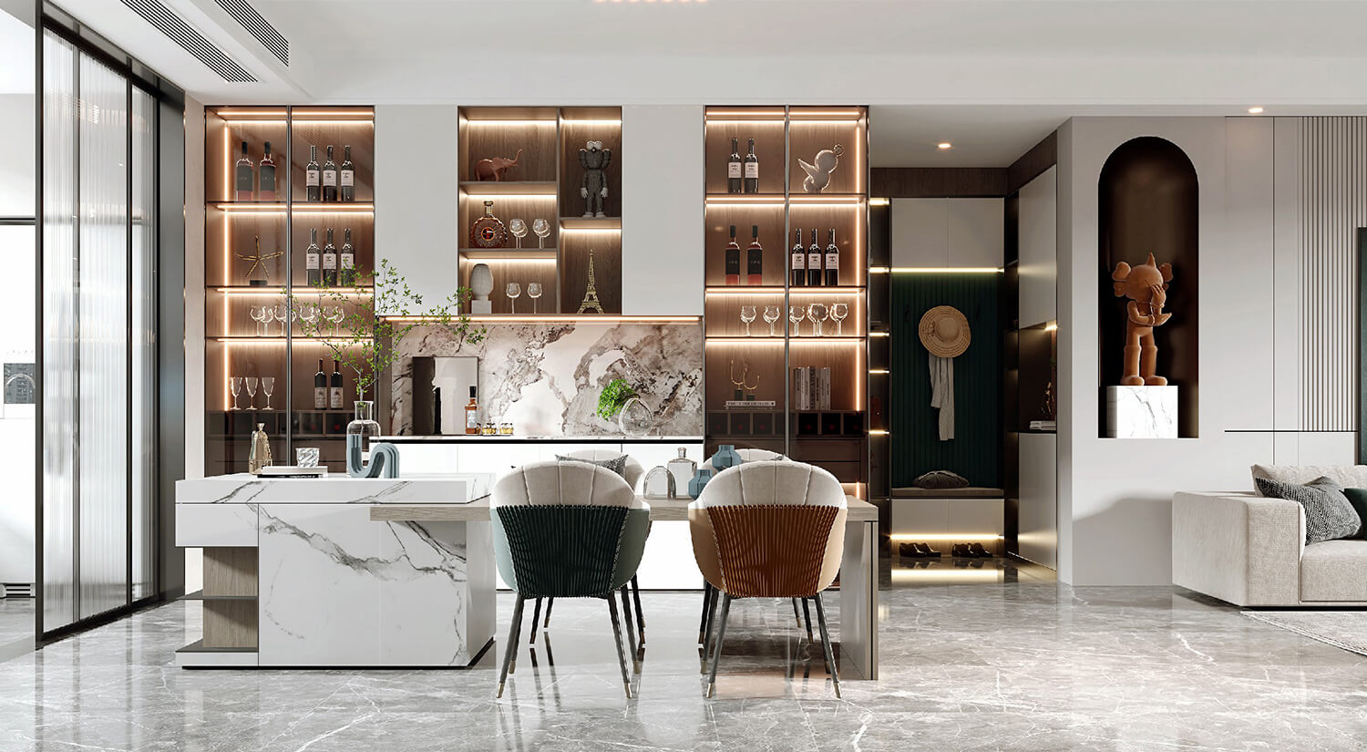 瀏覽量:523在現(xiàn)代輕奢風(fēng)格的裝修中,還需要考慮空間布局和功能性的結(jié)合。一般會(huì)將客廳、餐廳打通,形成開放式的空間,增加通透性和流動(dòng)感。暖色線燈烘托家的溫馨氛圍,享受與家人一起用餐的美好時(shí)光。