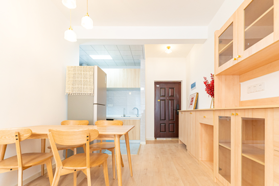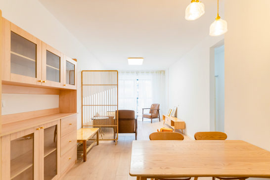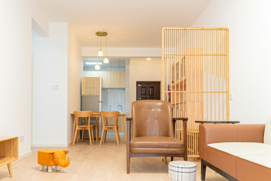 整個空間基于原木風(fēng)格上做搭配,陽臺打通,解決不互通的采光問題,天氣陰晴,都可以為空間做天然點(diǎn)綴;開放式廚房和餐廳可以共享操作,互不干擾,又可以加強(qiáng)家人之間的互動性提高家庭的幸福感。