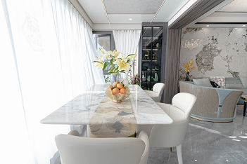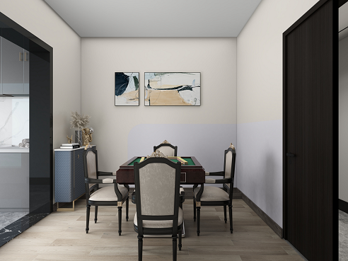 客廳、餐廳廚房是室內(nèi)空間里非常重要的區(qū)域,同時(shí)也占據(jù)了室內(nèi)的大部分空間。業(yè)主想要一個(gè)舒適大氣的客餐廳,希望設(shè)計(jì)師能在作品空間中展現(xiàn)的靈活性和延伸感,通過應(yīng)用線條的變化,色彩變化及不同筆法表現(xiàn)畫面的虛實(shí)與美感。女主人對麻將情有獨(dú)鐘,想擁有自己的麻將室。