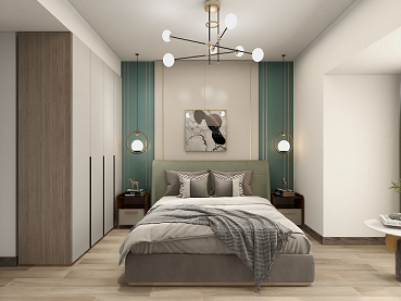 主臥的套房設(shè)計(jì),主臥,衣帽間,書房一體化可以給業(yè)主更強(qiáng)的居住獨(dú)立性以及舒適感。整體延續(xù)了客廳的風(fēng)格,白色與綠色之間的碰撞,與客廳互相呼應(yīng),橙色的懶人椅作為整個(gè)空間的點(diǎn)綴色。照明以主燈加上床兩側(cè)的吊燈做陪襯,讓整個(gè)空間顯得很有層次更有情調(diào)。